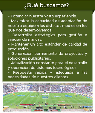 Somos líderes en la producción de publicidad perimetral y sistemas para estadios deportivos (indoor y outdoor) maximizando el impacto de las marcas en los espectadores y en la audiencia televisiva.
