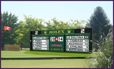 Diseño de tablero tanteador de grandes dimensiones para el Club de Polo Ellerstina. La idea incluía carteles con nombre de equipos, jugadores y sistema de números acompañados por un diseño general alusivo al polo. |